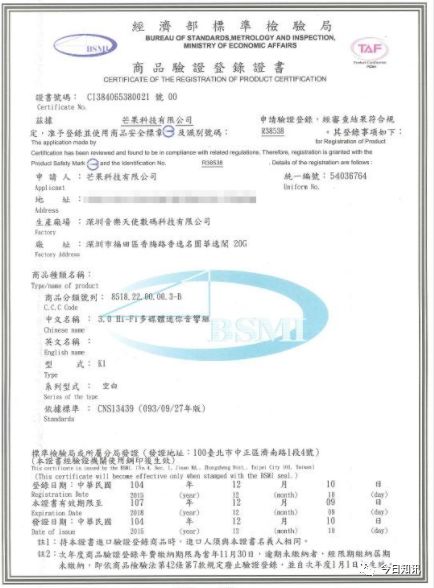BSMI认证 ,BSMI 是台湾经济部标准检验局的英文“ Bureau of Standards,Metrology and Inspection “的缩写。根据台湾经济部公告,从 2005 年 7 月 1 日 起,进入台湾地区的产品要实行电磁兼容性和安规两个方面的监管。中国台湾BSMI认证是强制性的,他对EMC和SAFETY都有要求,不过,BSMI目前没有工厂检查,但必须按照标准局的规定办事。所以,BSMI的认证模式是:产品检验+登记监管。