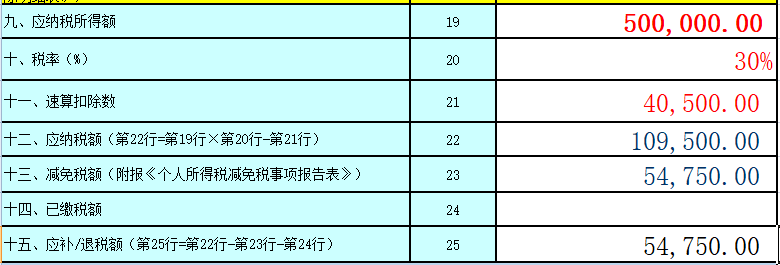 减免税额=(50*30%-4.05)*(1-50%)=5.475