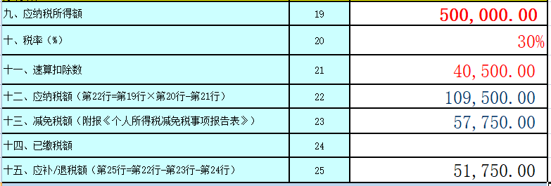A机构是一家个体户,年应纳税所得额是50万。如果没有其他减免政策。