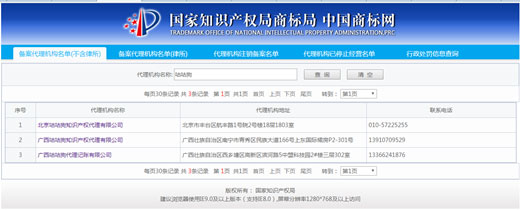 不管是个人还是企业,都可以通过国家知识产权局商标局中国商标网进行查询相关商标代理机构备案情况,查询路径:首页——商标代理——备案代理机构名单——输入“代理机构名称”进行查询,只要是在国家知识产权局备案的商标代理机构,都会在里面进行显示详细的代理机构名称、代理机构地址和相关的联系电话。